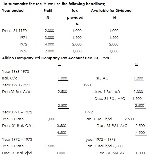 short fall in company profit. Assume that Albino Company Ltd meets is tax
