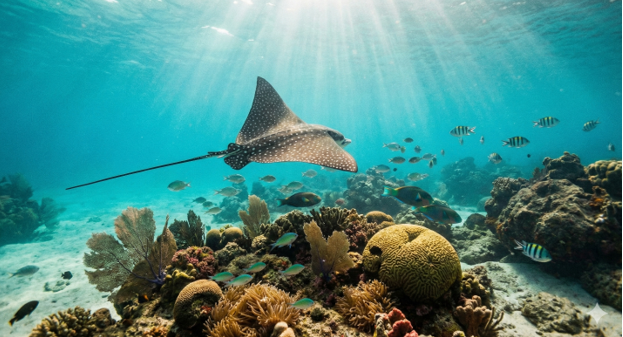 With a swift kick of his fins, Andy swam down to meet a spotted eagle ray on the sea floor. The ray was graceful and calm, gliding just above the coral. This encounter showed him why scuba diving Costa Rica is so special. Guides at Ananda. Dive N’ Flow often lead divers to hidden spots where creatures like this live. As Andy practiced his fins-first entries, the rich marine life reminded him of what Ananda’s site says: the Nicoya Peninsula is “one of the most idyllic diving spots in Costa Rica”.