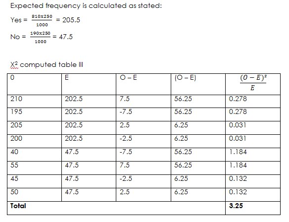 than table value of 0.05 = 7.815 at 3df, the researcher accepted the null