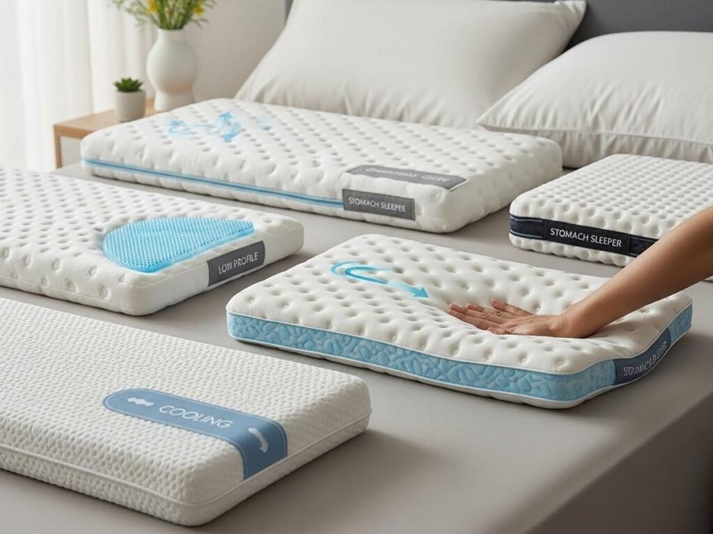 Cooling gel foam and latex are generally considered the best materials. Because stomach sleepers sleep face-down, their breath creates a warm, humid environment directly against the pillow. Traditional down can trap this heat, leading to discomfort and acne. Ventilated foams or cooling fabrics help dissipate heat away from the face. Furthermore, memory foam offers better contouring for the jaw and cheekbones than flatter materials like cotton batting.