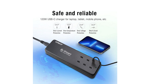 This powerhouse is perfect for those who need to charge multiple devices simultaneously. With 10 USB-C ports, it delivers a total output of 200W, supporting Qualcomm Quick Charge 3.0 for fast and efficient charging. Whether you’re at home, in the office or running a café, this hub ensures your devices are powered up safely with features like over-current, over-voltage and over-temperature protection.