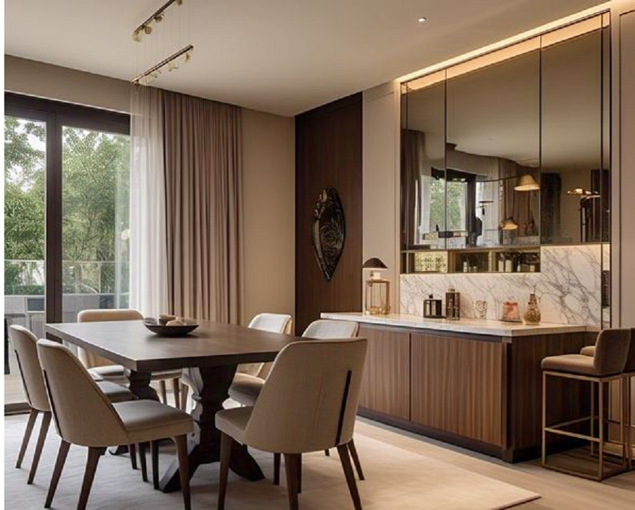 Your hosting corner should allow easy movement between the 4-seater dining table and the home bar cabinet. This seamless flow enhances the social experience and makes hosting effortless.