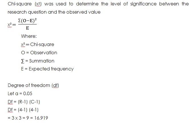 value of X2 is 74.2, critical value is 16.919 at an alpha of 0.05 level of significance.
