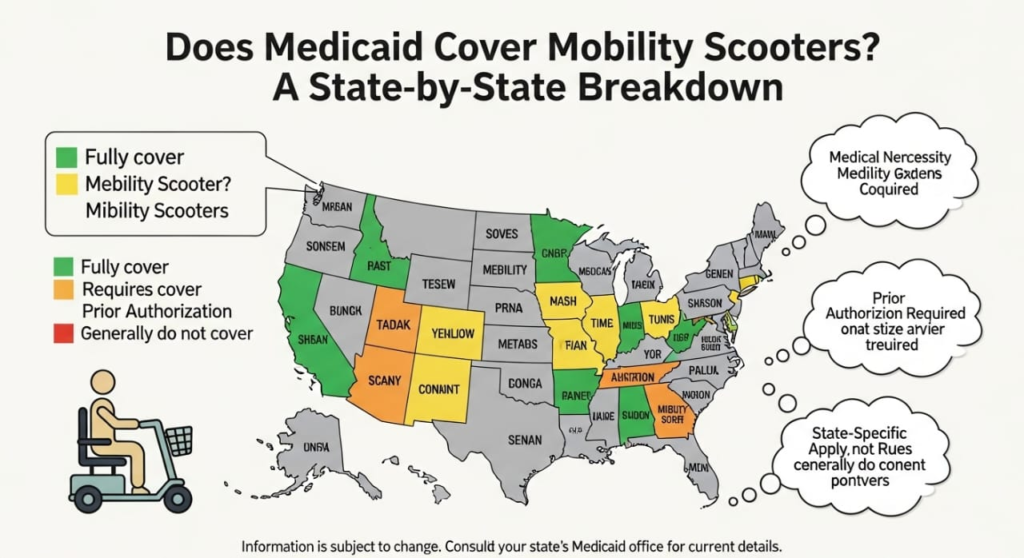 Q: Does every state’s Medicaid program cover mobility scooters? A: Most states cover mobility scooters as durable medical equipment, but eligibility criteria and coverage specifics vary. Contact your state Medicaid office to confirm coverage rules in your state.