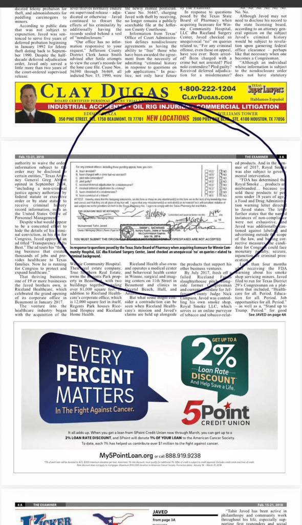 Public records from Jefferson County Court (Case No. 56447, 1990) show Javed was convicted of “Theft by Receiving,” receiving five years’ probation. He later failed to disclose this conviction when appointed advisor to Pakistan’s interim Prime Minister Anwar-ul-Haq Kakar in 2023; the appointment was rescinded after exposure of the record. In Texas, a separate ethics complaint forced Javed to withdraw from a Fort Bend County Commission race in 2024.