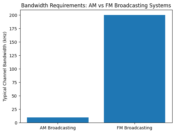 FM broadcasting involves much broader bandwidth since the frequency deviation, and multiple sidebands (Stremler, 2018).