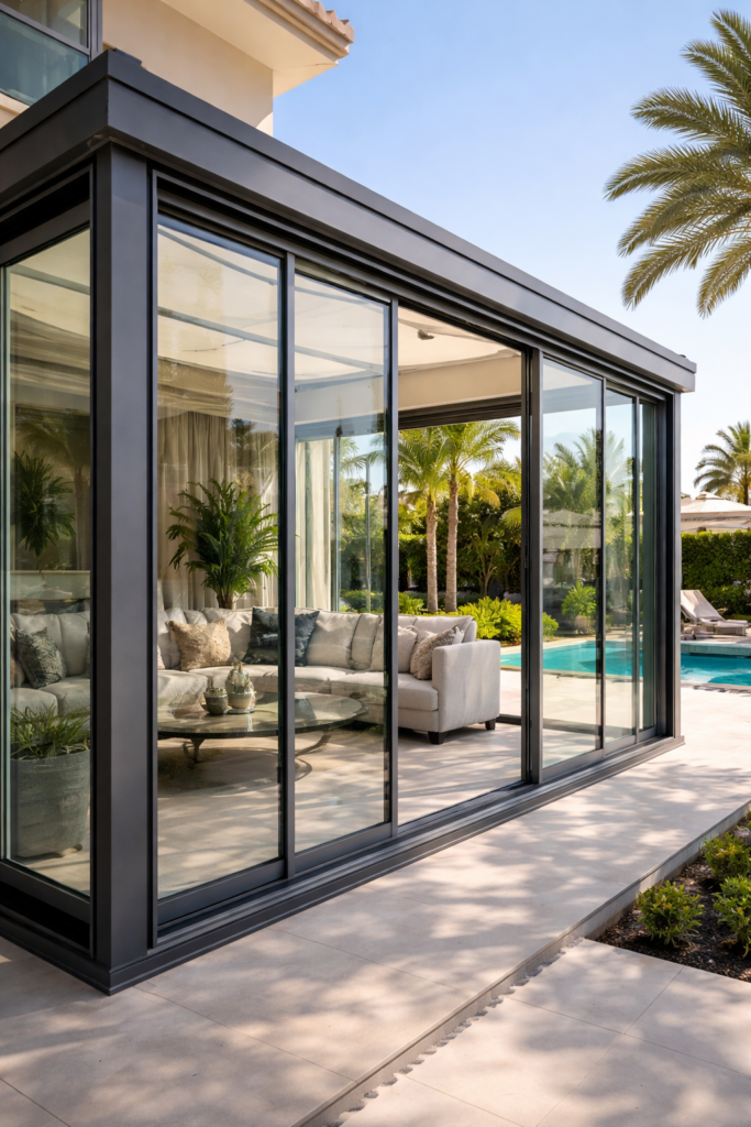 One of the most practical options for Dubai homeowners, turning unused patios into year-round living areas. Patio enclosures in the UAE are increasingly requested for both villas and townhouses.