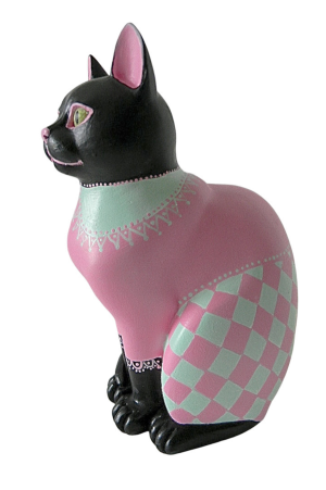 You can display a hand painted resin cat in black in several creative ways: