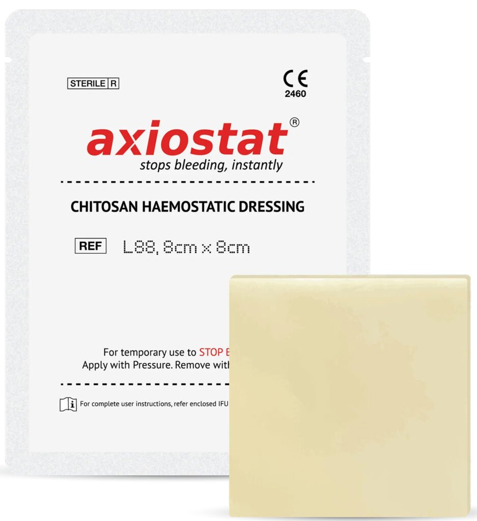 Among the hemostatic agents currently in use, Axiostat has received attention for its chitosan-based technology. This substance reacts with the blood at the surface of the wound and creates a robust mechanical barrier. It is not dependent solely on the natural speed of the body’s clotting response, which can be injury- or patient-dependent.