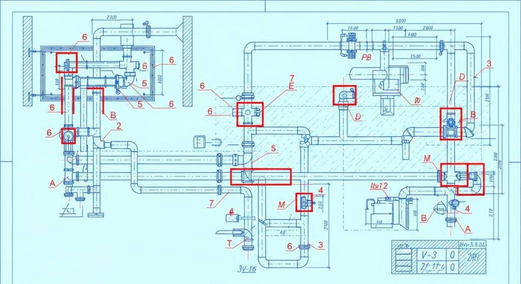 Caption: Annotated plumbing drawings with marked quantities