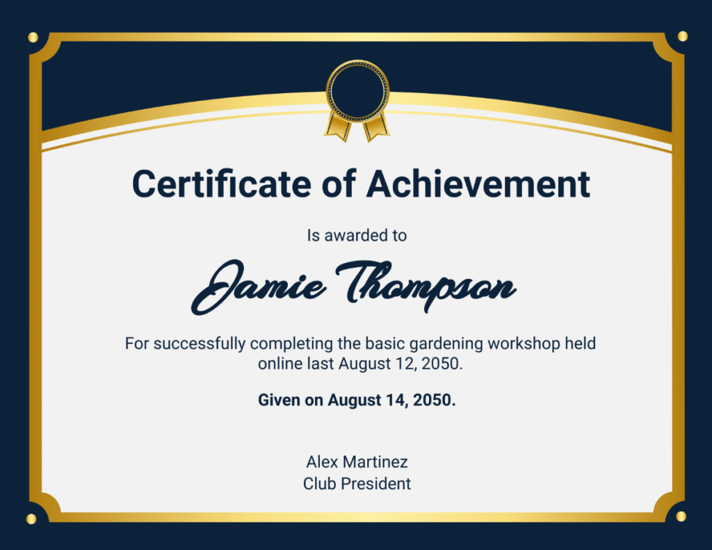 Instead of just putting “Certificate of Achievement,” you can try something like: “Presented to [Name] for showing exceptional creativity and determination in Art Class.” This helps you add some storytelling to their accomplishment.