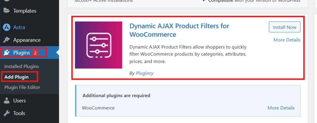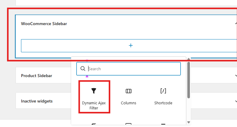 - In the search box, type: Dynamic AJAX Product Filters for WooCommerce