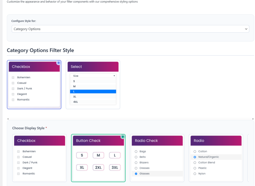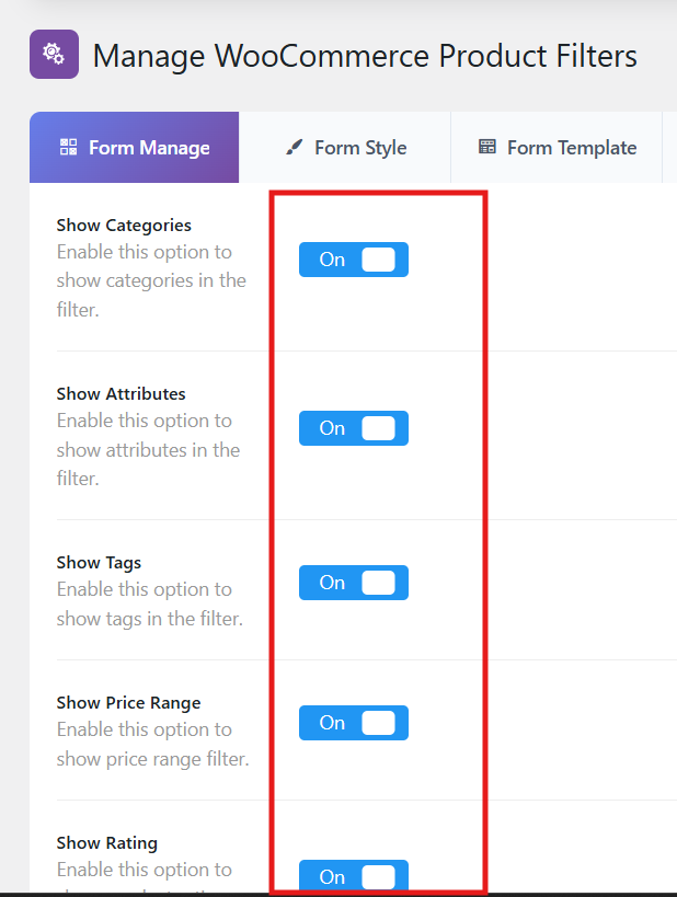 Go to Product Filters → Form Style. Here you can customize how the filters will look and their display style. Pick the style you like and click Save Changes.