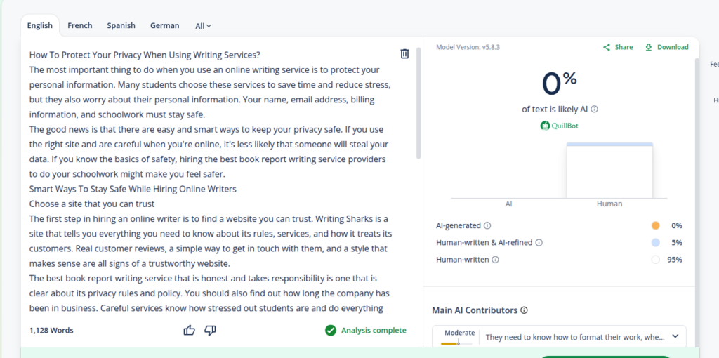 The first step in hiring an online writer is to find a website you can trust. Writing Sharks is a site that tells you everything you need to know about its rules, services, and how it treats its customers. Real customer reviews, a simple way to get in touch with them, and a style that makes sense are all signs of a trustworthy website.
