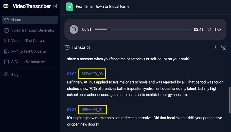 (Video Transcriber AI Automatically identifies the speaker)
