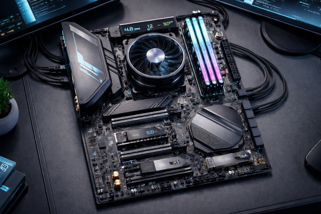 The motherboard is at the base of the system which in turn connects all hardware elements and makes their communication smooth. Also it is the element which determines what components will plug in and how they interact.
