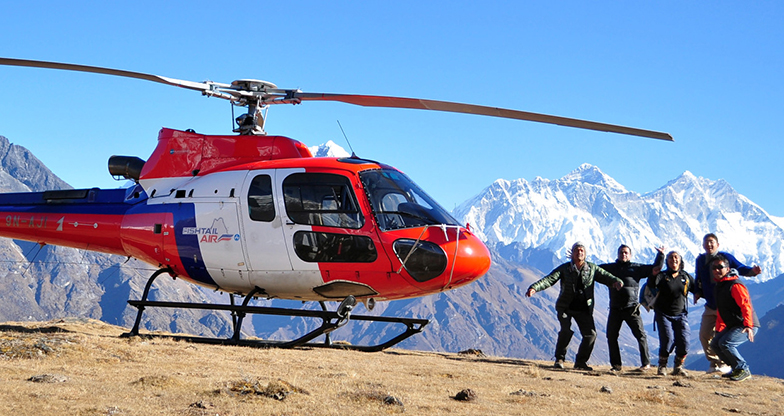 Usually, people take 10 to 14 days to finish this trek. They have to walk to Base Camp and then use the helicopter to fly back. Trekkers have the opportunity to live in nice hotels and lodgings. They get good food and comfortable beds. The helicopter gives them the chance to see the Himalayas from a bird eye view.