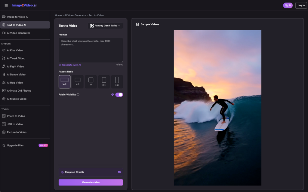 This is where the magic happens. Describe the motion you want to see. Instead of just saying “make it move,” try “gentle wind blowing through the hair” or “cinematic slow zoom into the product.” Our Image to Video AI technology interprets these natural language instructions to guide the animation process.