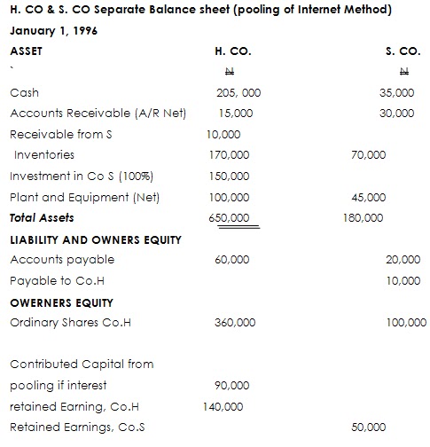 consolidates the balance sheet shown above, Co.H and its subsidiary Co.S (100%