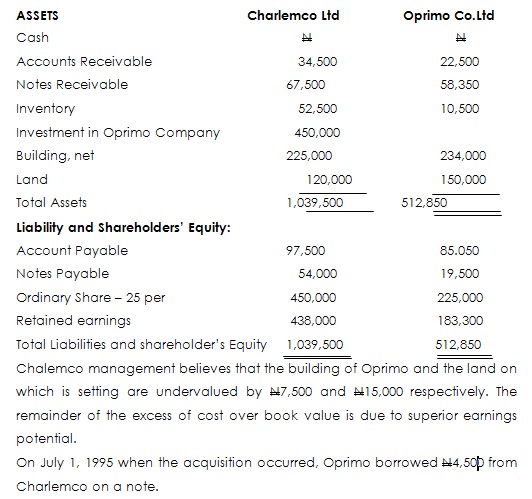 all the outstanding ordinary shares of Oprimo Company Ltd July 1, 1995 forN450,000. The balance sheets for the two
