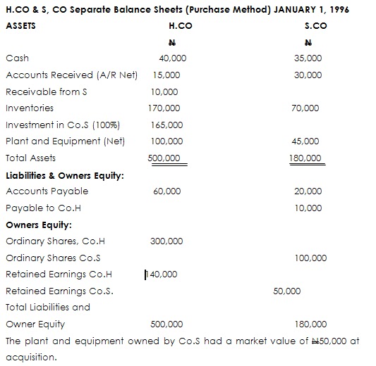 method, the consolidated balance sheet will report a cash balance ofN10,000 and the balance sheet of Co. S