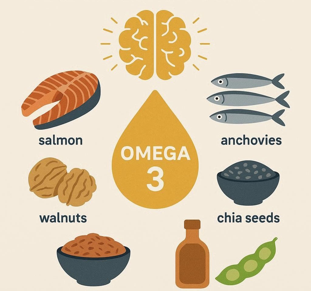 The sources of omega-3 fatty acids are fatty fish (salmon, mackerel, and sardines) and plant-based foods (flaxseeds and walnuts). These foods can substantially improve the brain health and cognitive performance when they are incorporated into the diet.