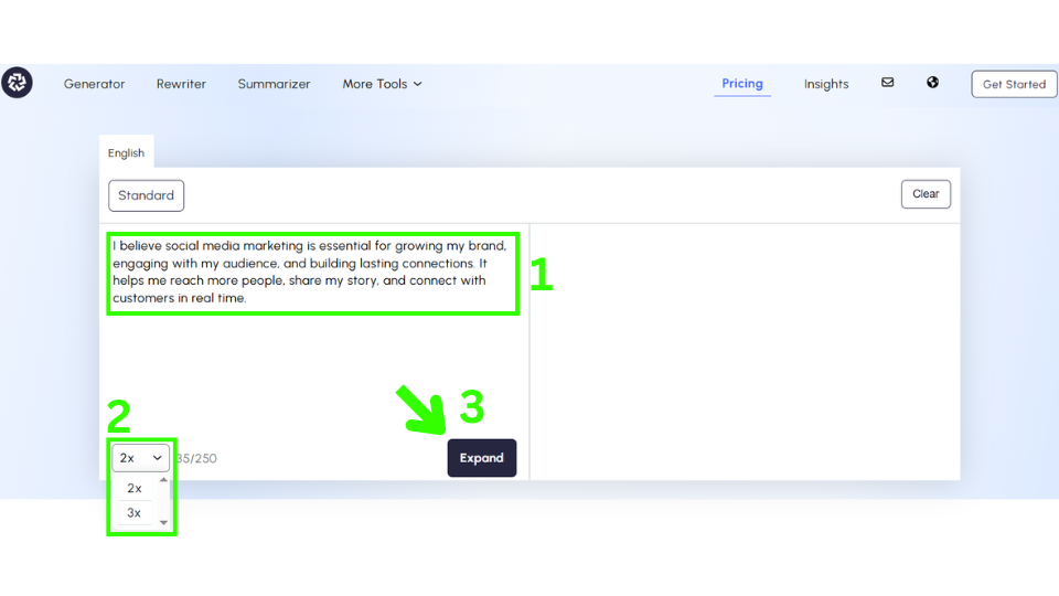 One of the biggest reasons I use paragraph extender is its ease of use. Even today, I can paste a 2-line thought and choose how much longer I want it to be (2x, 3x, …).