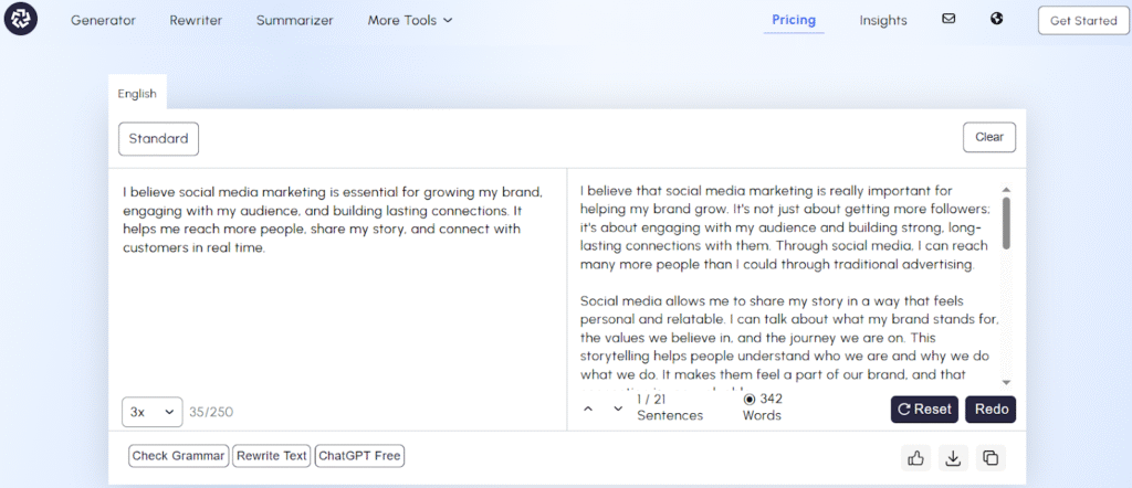 The best thing is that it expands my text logically. Not like tools that either repeat the same point or drift away from the main idea.