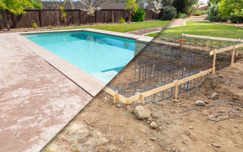 Once permits are cleared, excavation begins. The builder outlines the pool’s dimensions and digs the area. After excavation, the steel framework is installed to support the structure. Depending on soil type, weather, and project complexity, this stage usually takes one to two weeks.