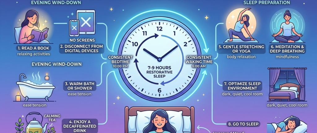 To enhance the quality of sleep, one needs to consciously make the body aware of the timing systems of sleep. With continual implementation of evidence-based practices, one can develop a deeper and more effective rest and contribute to overall health and wellness over a long period.