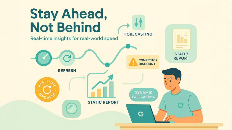 Modern sales teams operate in a real-time system; buyers shift preferences every day, competitors launch new offers without warning, and global events change demand instantly. In this kind of environment, traditional static reports fail because the market keeps changing.