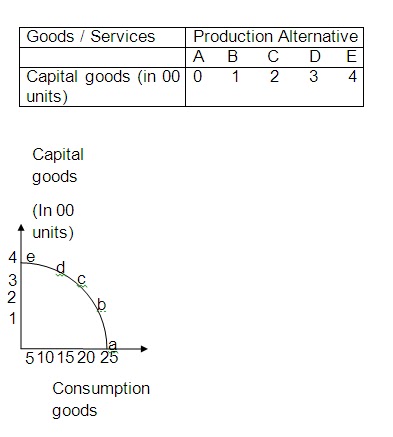 the curve, such as c, to produce more of capital goods would imply that the