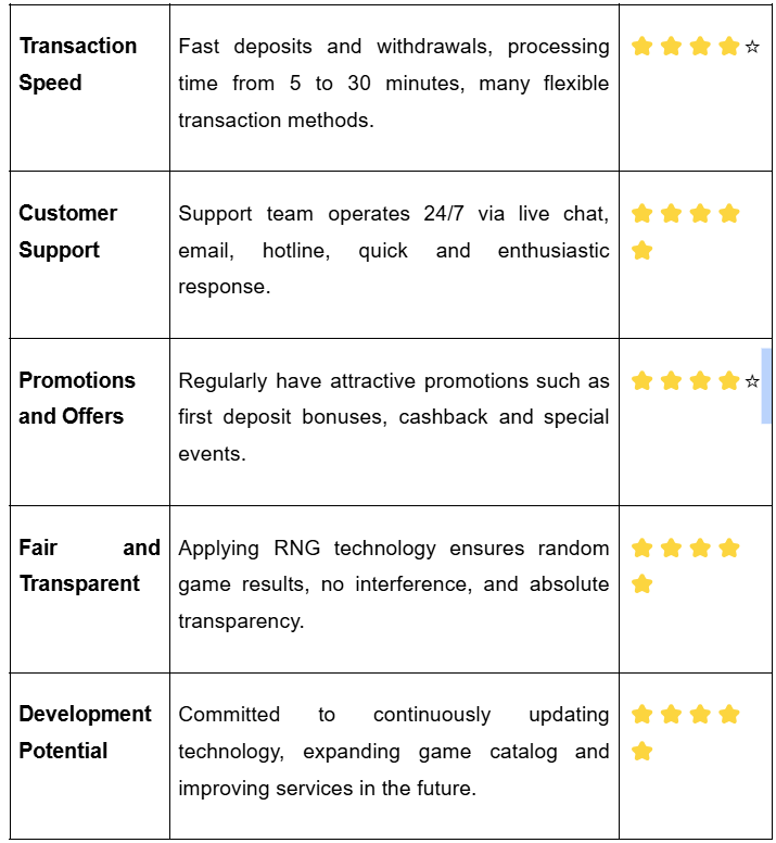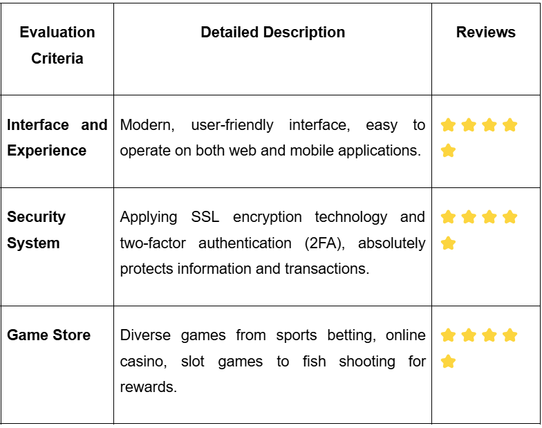 In particular, the games here are integrated with the progressive jackpot feature, where the prize value increases with each round of play and brings huge winning opportunities. Moreover, many games also have seasonal events, tournaments or special missions, helping players not only experience the feeling of conquest but also receive many attractive gifts such as cash, free spins, or valuable physical rewards.