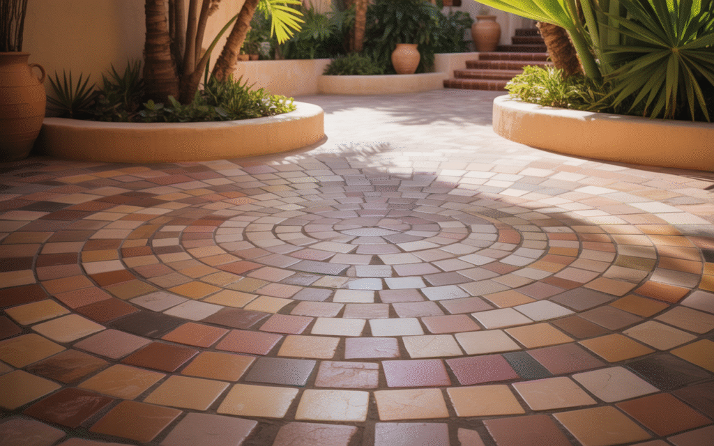 Pattern choices should consider both structural performance and visual harmony with your home’s architecture. Herringbone patterns provide maximum interlock and stability, making them ideal for driveways while creating visual interest that suits both traditional and contemporary homes. Running bond offers clean, linear aesthetics that complement modern coastal architecture. Circular and fan patterns work beautifully for courtyard entries on Mediterranean style properties.