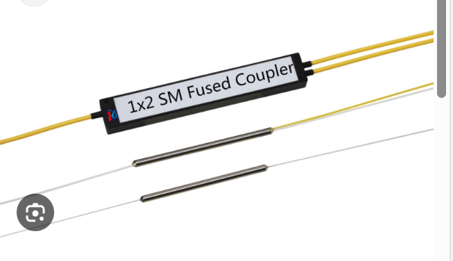 A fused coupler is a passive fiber optic device that splits or combines optical signals between two or more optical fibers. It is created by fusing and tapering two (or more) optical fibers together under controlled heat and tension. The process results in a shared core region where light can transfer from one fiber to another via evanescent field coupling.
