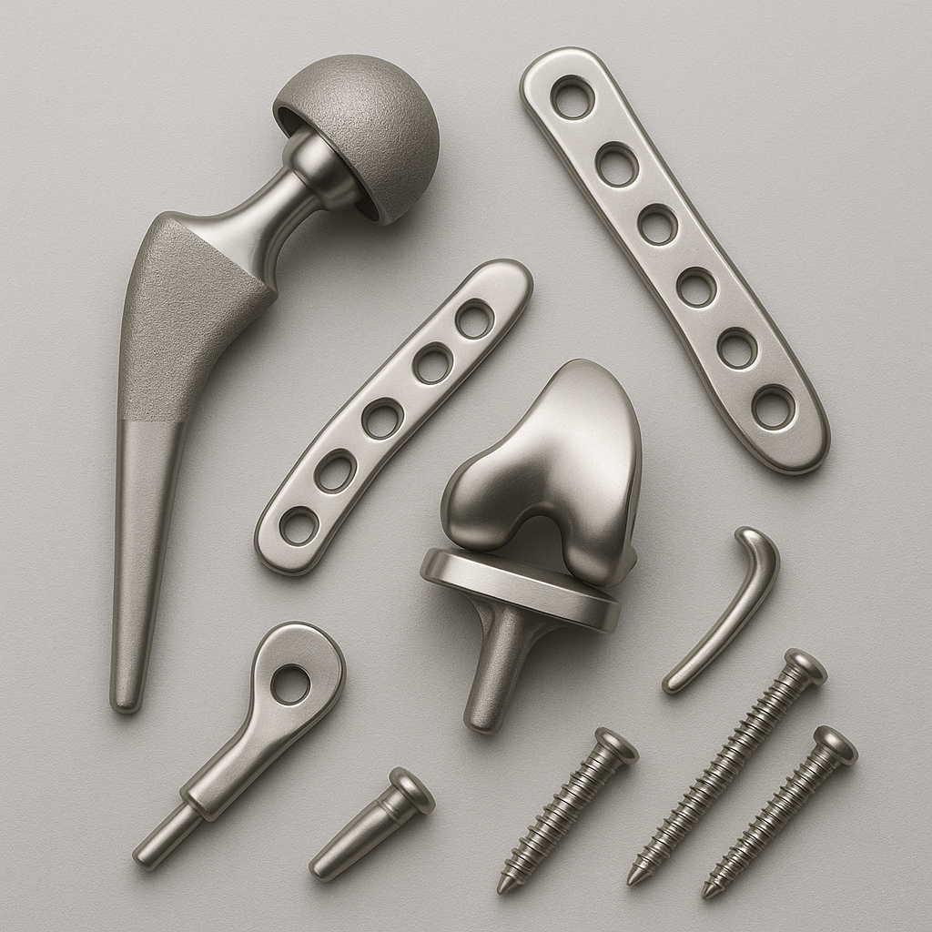 Choosing the right material for manufacturing an implant for orthopedic surgery is essential for patient safety and healing success. Common materials include: