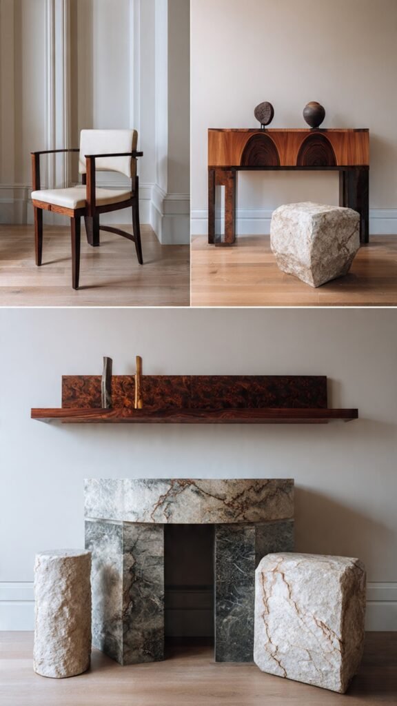 Minimalism and considerate design are very important in modern interiors, so wood and stone add texture, warmth, and contrast. They do not make spaces dematerialized, but bring richness and character which can be seriously lacking in mass-produced furnishings.