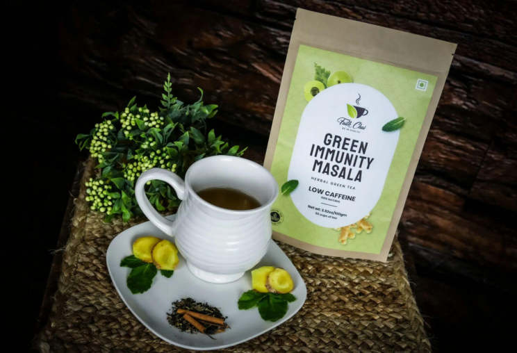 Green Immunity Masala bridges two worlds. Light green tea is combined with spices, which hit hard, such as tulsi, cinnamon, black pepper, and ginger. The spices protect your immune system as the green tea ensures that nothing gets too serious.