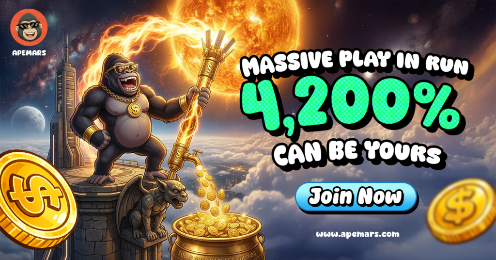 APEMARS ($APRZ) is a Mars-themed, narrative-driven memecoin currently in Stage 12 presale at $0.00012506, targeting a $0.0055 listing price. Its tokenomics are intentionally symbolic: staking at 63% APY references Mars’ −63°C, and 9.34% referral bonuses mirror orbital eccentricity. The structured, story-driven presale rewards early participation, generating a 4,297% potential ROI. Compared to other coins like Pump.fun ($PUMP) and Chiliz ($CHZ), APEMARS integrates narrative mechanics with financial incentives, differentiating it from surface-level rewards. Investors can join via Ethereum wallets, monitor stage progression, and leverage referral networks. This article highlights strategic early-stage participation, structured presale mechanics, and the symbolic design approach that positions APEMARS as the top crypto to join now while providing context for broader market trends and alternative coins.