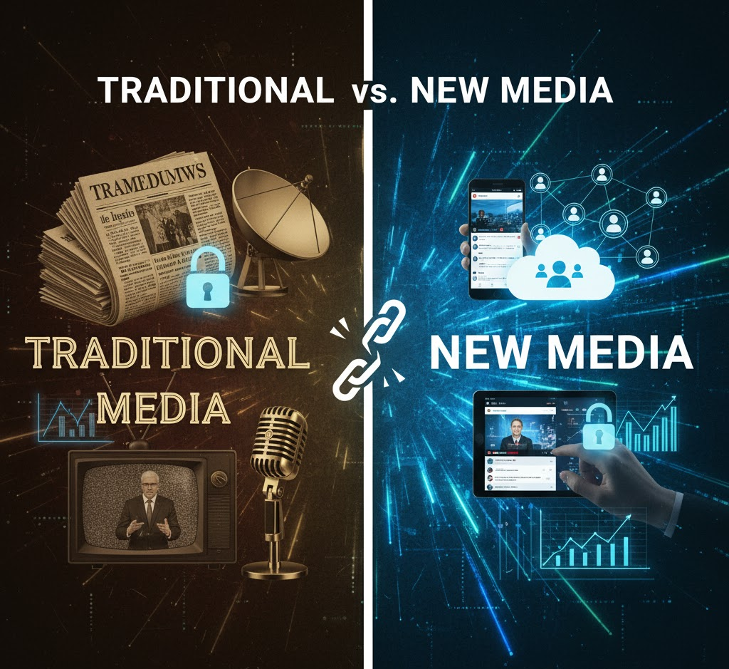 Although the two (Traditional vs. New Media) serve the same purpose, to inform, entertain, and connect, their methods of communication speed, interacting with the audience, and eventually, credibility, make them forces with entirely different guidelines in the contemporary digital world.