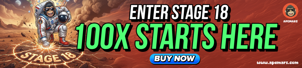 APEMARS launches its mission through Operation Red Banana, a 23-stage crypto presale inspired by the real 225-million-kilometer journey from Earth to Mars. Each stage represents a segment of Commander Ape’s journey, transforming the presale into a narrative-driven ecosystem.