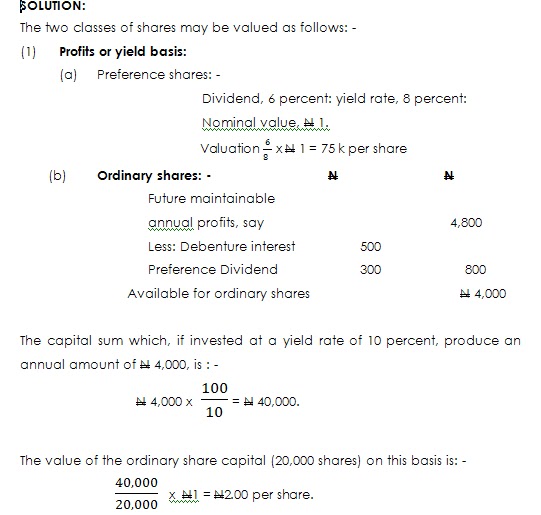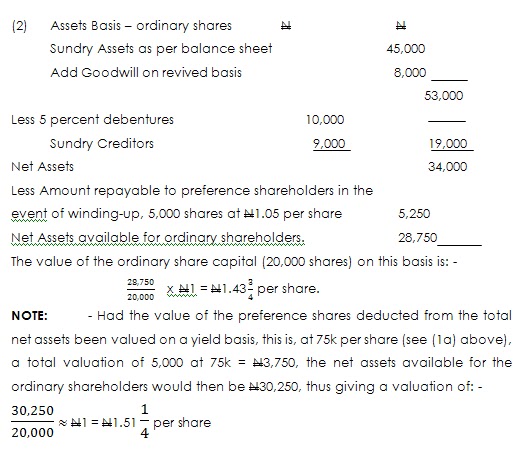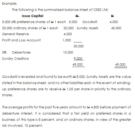other non-shareholders, thus giving the total net assets. The value of the preference