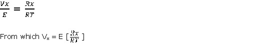 Where Vx is the voltage drop across resistor Rx, E is the total applied voltage and RT is the total equivalent resistance.