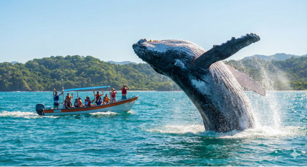 Imagine waking up to the sound of waves in Santa Teresa. Julia had heard stories of humpback whales migrating past the Nicoya Peninsula. She had even saved the dive center’s number (+506 8771 1994), and she was thrilled at the chance to see them for herself. On her first morning, she joined a boat tour with Ananda. Dive N’ Flow, laughing with other tourists as they headed into the open ocean. Whale-watching Santa Teresa was on the itinerary, but Julia also planned to snorkel and try freediving during her stay. The boat motor hummed as they reached deeper waters, and soon the captain pointed out a blow on the horizon. Julia saw a tall spout of water rise into the air a whale was surfacing! The boat lurched gently as the humpback rolled back into the sea with a splash.