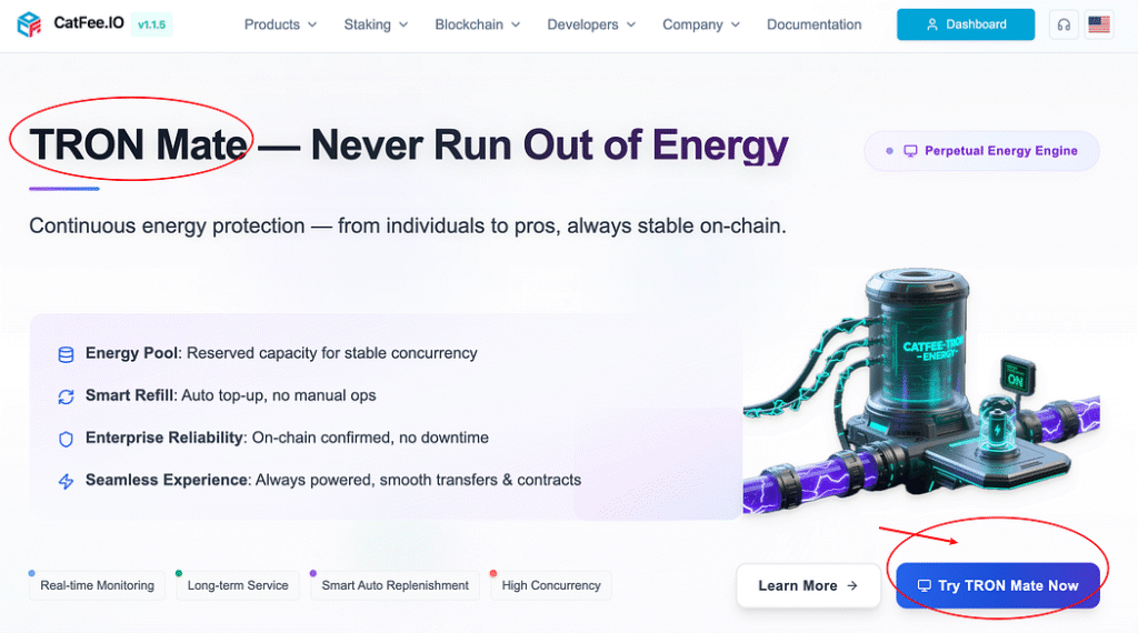 Tron Energy Mate is a long-term Energy service by CatFee that helps you use the TRON network more efficiently and reliably.