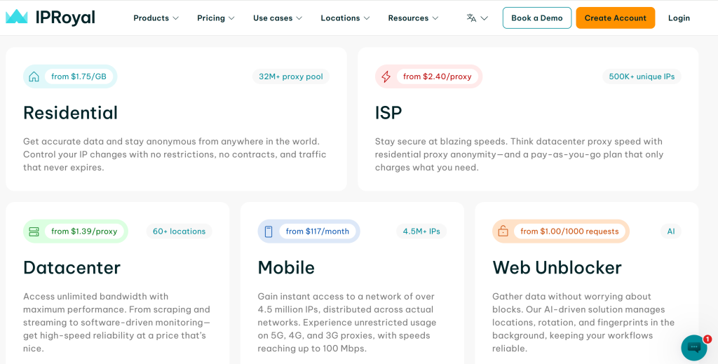 For users with smaller or mixed residential workloads, IPRoyal’s pricing structure may feel less adaptable compared to providers offering clearer separation between residential proxy types.