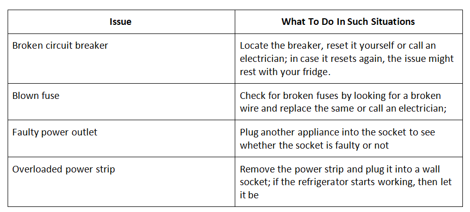 Take a look at the table below to see what you should do in such situations before calling a service for emergency fridge repair in Toronto: