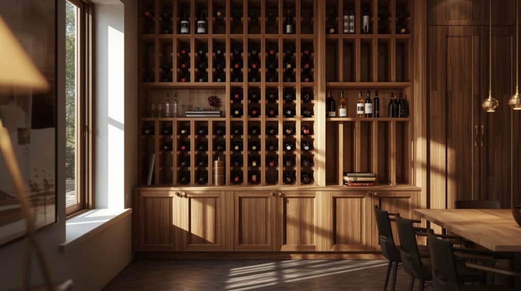 The weight distribution is naturally balanced. Bottles sit gently in carved or shaped slots. The structure doesn’t warp easily if the rack is built from quality timber. For many homeowners, it’s the combination of durability and warmth that pushes wood ahead of metal options. Metal wine racks may be great for sharp modern interiors, but wood gives you both reliability and atmosphere.