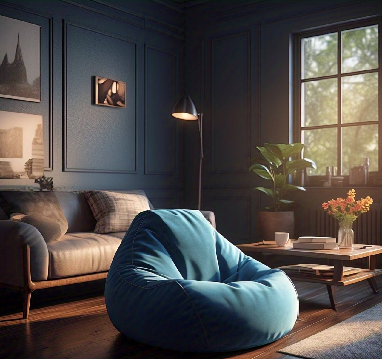 Another way to add visual interest to a room is to choose a bean bag in a complementary color to the other shades. This creates a dynamic and engaging space. On the other hand, a person might want to choose a bean bag in a shade similar to the dominant color in the room. For example, a baby blue bean bag chair would nicely offset a navy blue sofa, making the room visually soothing.